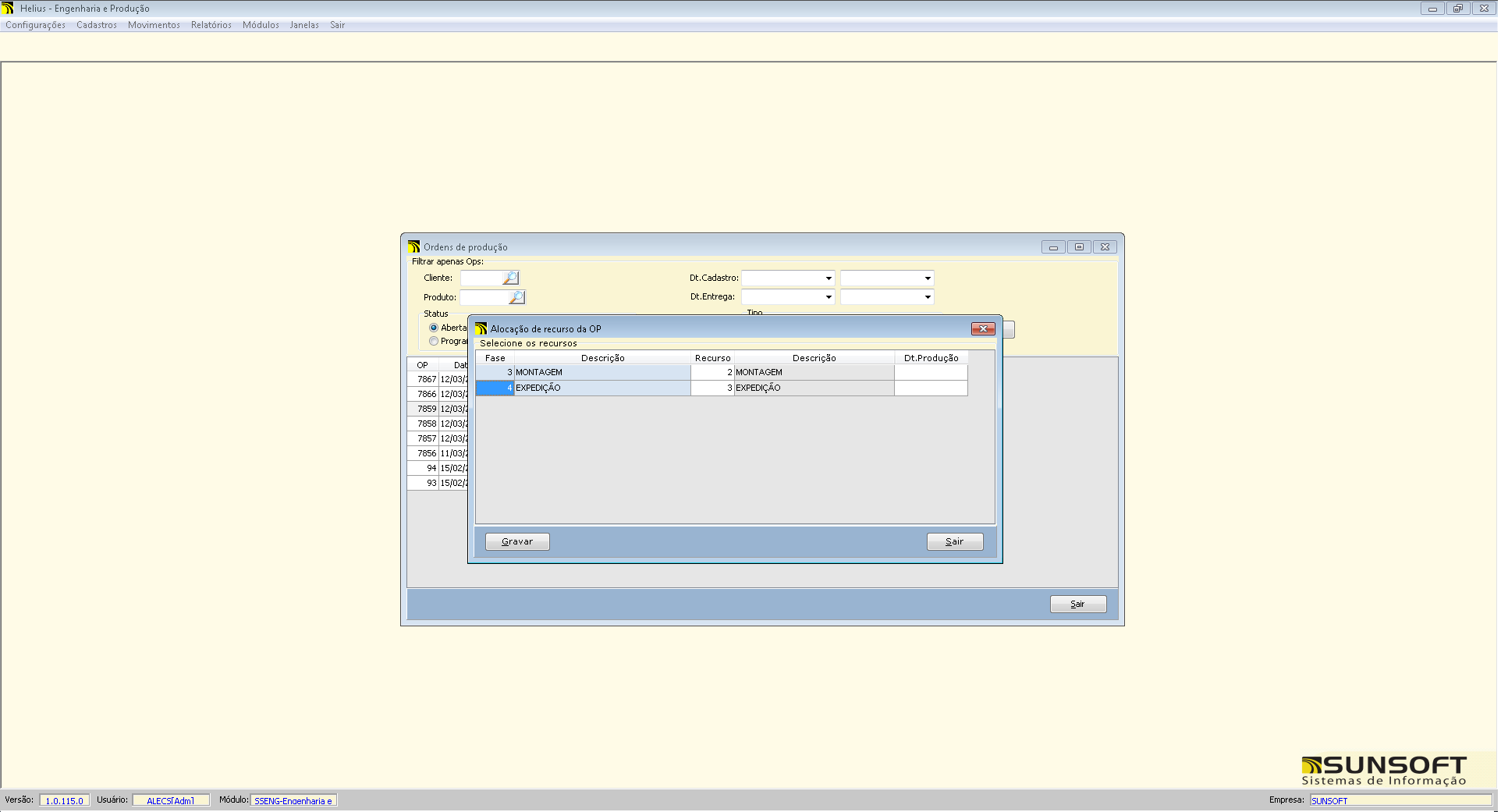 Módulo Engenharia e Produção - Cadastro de engenharia de produtos com múltiplos níveis - Geração de ordens de produção e serviço - Retornos de produção - Controle de recursos